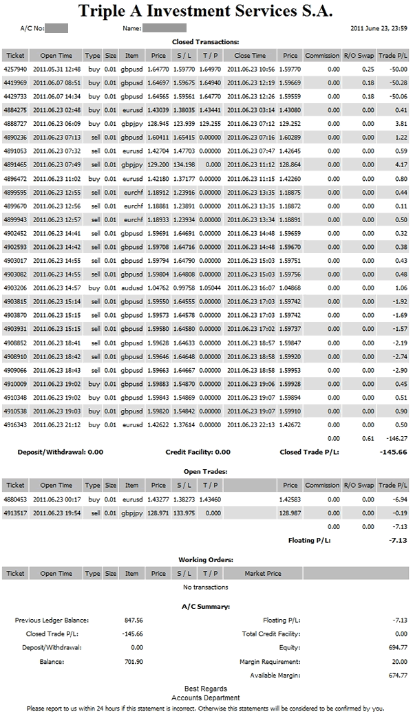 23日のZuluTrade×ZuluKingdomの資産運用実践成績レポートです。