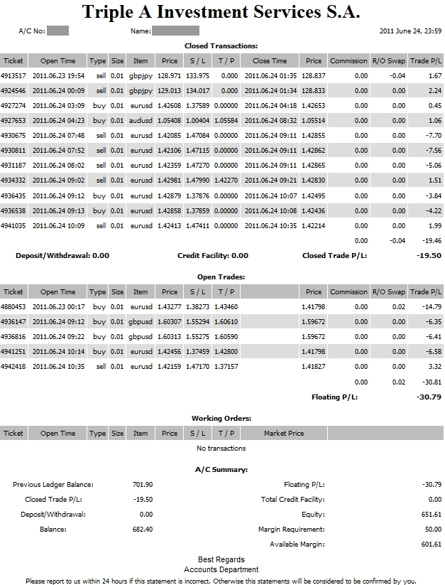 24日のZuluTrade×ZuluKingdomの資産運用実践成績レポートです。