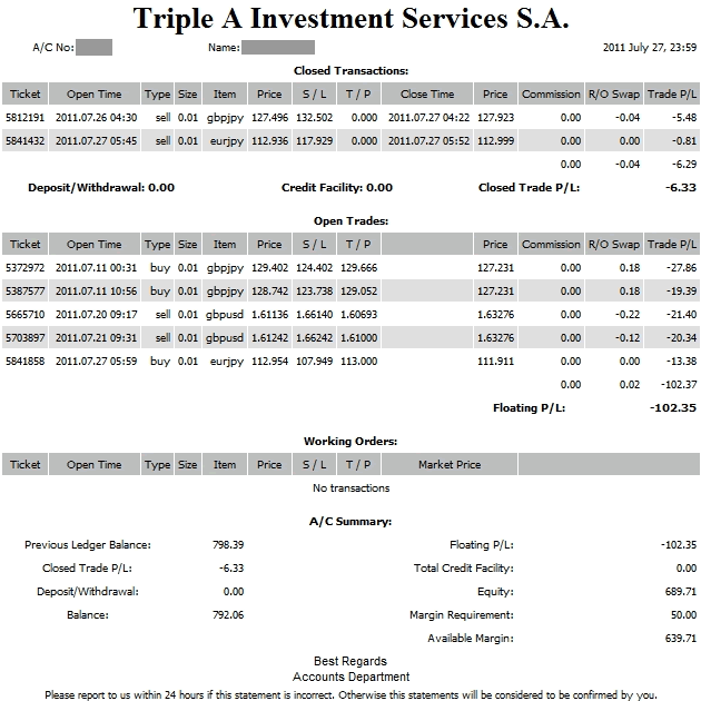 27日のZuluTrade×ZuluKingdomの資産運用実践成績