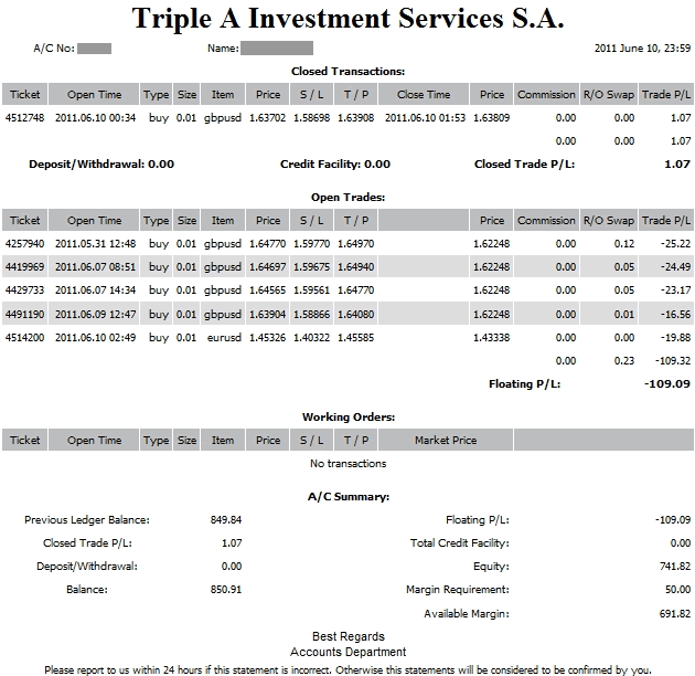 10日のZuluTrade×ZuluKingdomの資産運用実践成績レポート