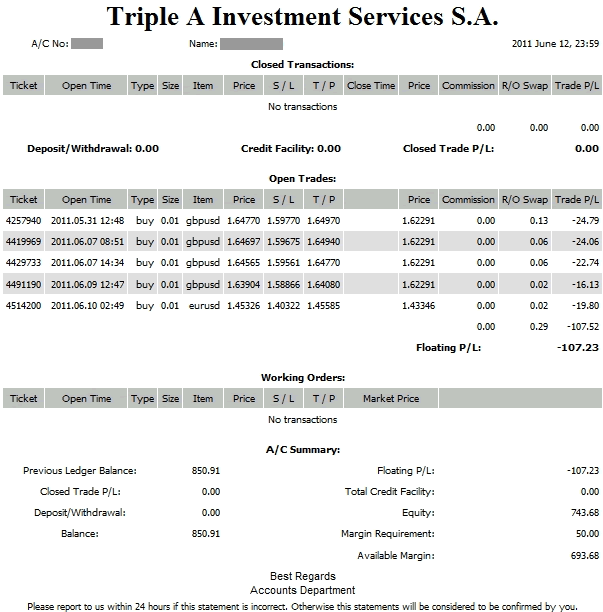 12日のZuluTrade×ZuluKingdomの資産運用実践成績