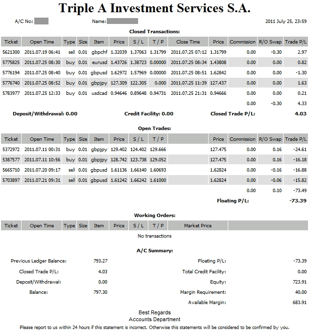 25日のZuluTrade×ZuluKingdomの資産運用実践成績